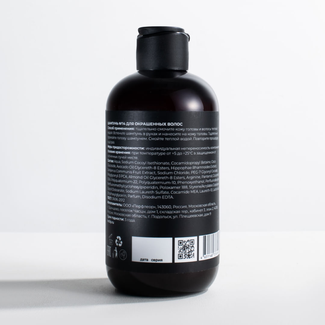 Шампунь № 14 – это правильный уход за окрашенными волосами. Он не только мягко очищает кожу головы и волосы, но также обеспечивает хорошее увлажнение и питание. Главная особенность средства – низкий рH баланс, благодаря которому цвет долго не вымывается, сохраняя насыщенность. Не является стопколором.