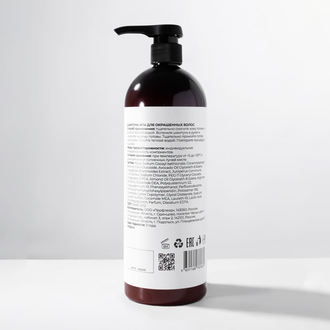 Шампунь № 14 – это правильный уход за окрашенными волосами. Он не только мягко очищает кожу головы и волосы, но также обеспечивает хорошее увлажнение и питание. Главная особенность средства – низкий рH баланс, благодаря которому цвет долго не вымывается, сохраняя насыщенность. Не является стопколором.